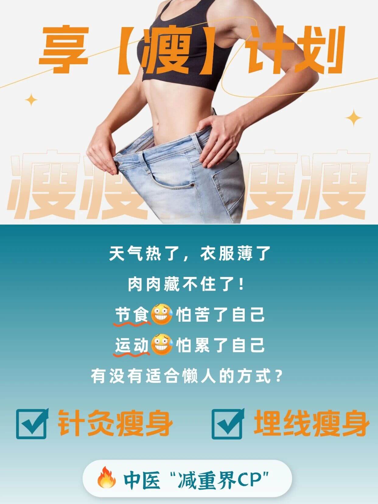 天气热了,衣服薄了,肉肉藏不住了!节食,怕苦了自己运动,怕累了自己有没有适合懒人的方式?针灸、埋线减肥——中医“减重界CP”,给你答案!帮你轻松开启享“瘦”计划~