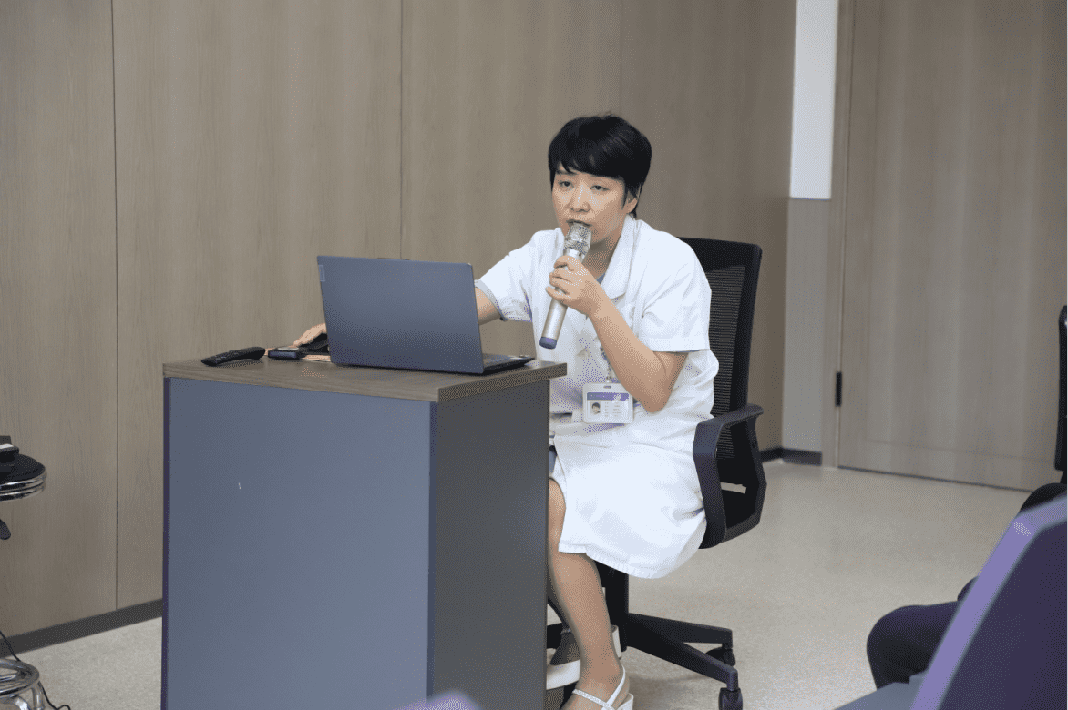 成都双楠医院眼科副主任医师郑海燕通过深入浅出的生动讲解,为在场的老人们详细介绍了眼部结构及白内障的成因和眼部健康保护方式。